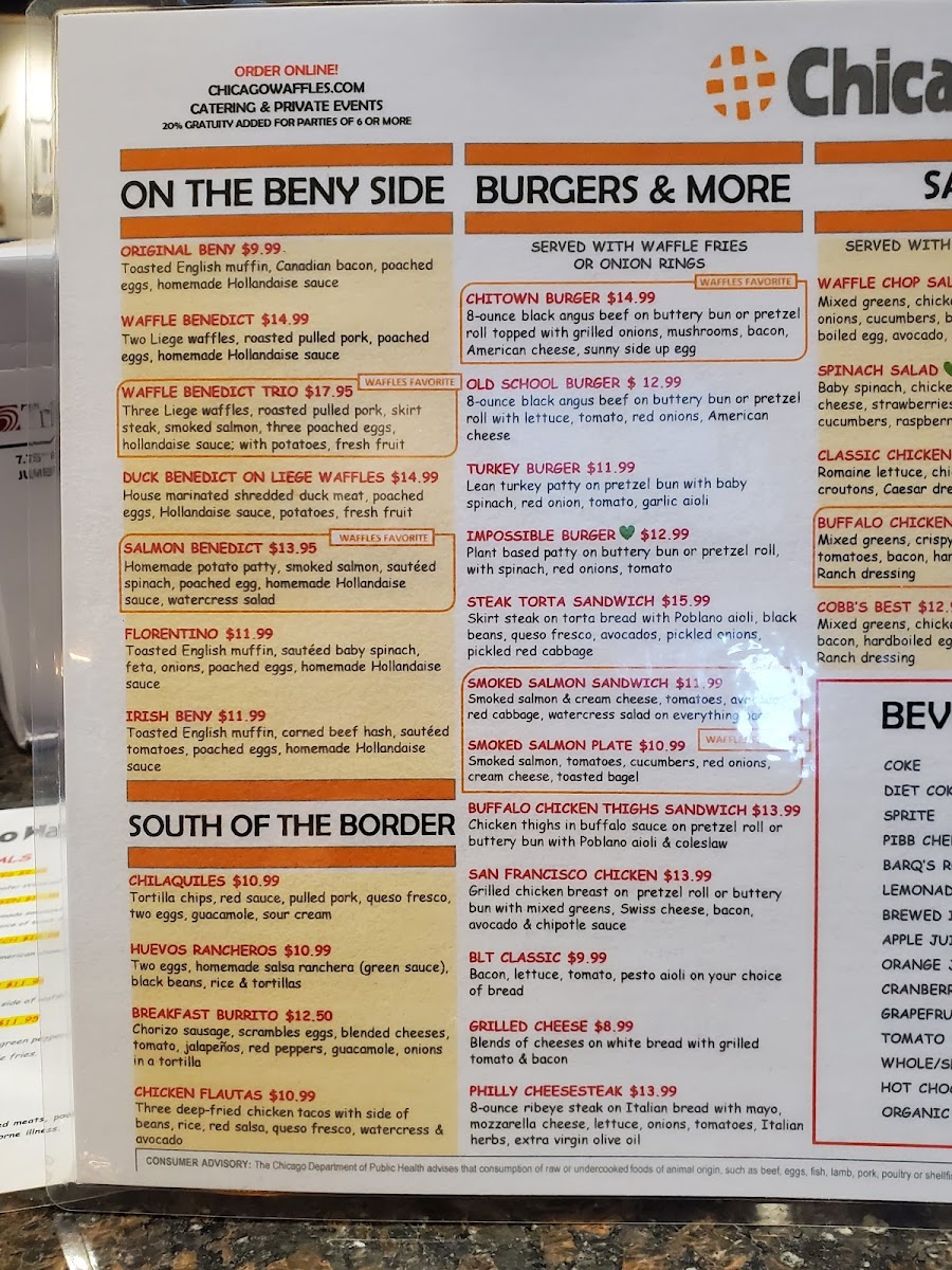 Health-conscious diners can relish the vibrant Waffle Chopped Salad or the charming Spinach Salad. The atmosphere is warm and inviting, with stunning outdoor seating that is also dog-friendly. Guests rave about the top-notch service and the rich flavors that keep them coming back for more. If you're in the West Loop, prepare to be enchanted by the delicious creations and welcoming vibes at Chicago Waffles West Loop!